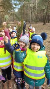 W ubiegłym tygodniu dzieci z grupy Wiewiórki wybrały się na wycieczkę do pobliskiego lasu. Przedszkolaki oglądały z wielkim zainteresowaniem pierwsze oznaki wiosny: kiełkujące trawy, pierwsze kwiaty oraz wiewiórki które skakały po drzewach. Dostrzegły także śmieci rozrzucone w lesie, było im przykro że las jest zaśmiecany.