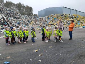 Dnia 13.10.2021 r. dzieci z grup Kotki i Misie wybrały się na wycieczkę do Zakładu Utylizacji Odpadów w Woli Suchożebrskiej. Przedszkolaki poznały miejsce, gdzie odpady komunalne zostają poddawane procesom segregacji, odzysku i składowania. Dzieci miały okazję na własne oczy zobaczyć, jak ważna jest segregacja śmieci, które w tak dużych ilościach produkujemy w codziennym życiu. Dzieci uczestniczyły też w zajęciach edukacyjnych, w trakcie których uczyły się segregować śmieci do odpowiednich pojemników. Celem wycieczki było zapoznanie ze sposobami segregacji odpadów, kształtowanie poczucia odpowiedzialności za nasze wspólne środowisko. Bardzo dziękujemy pracownikom ZUO za ciekawą i cenną lekcję😊