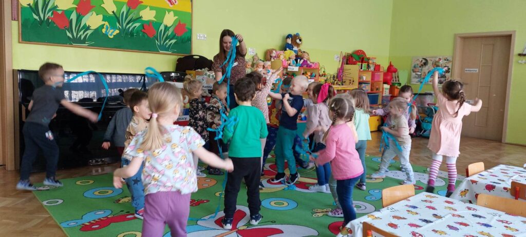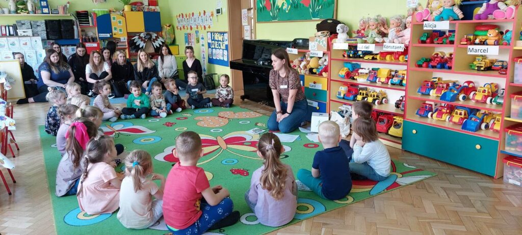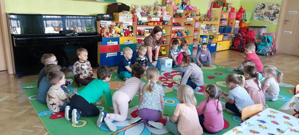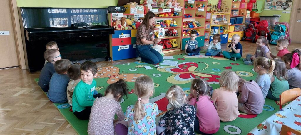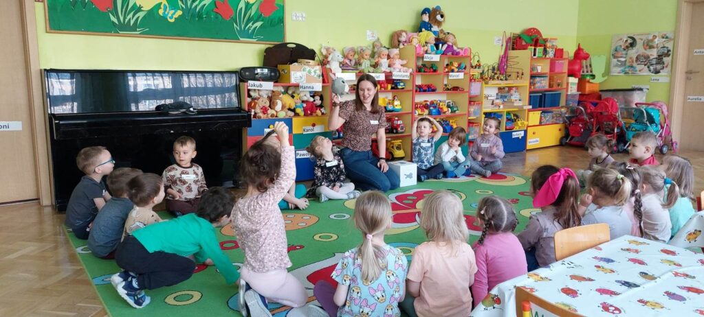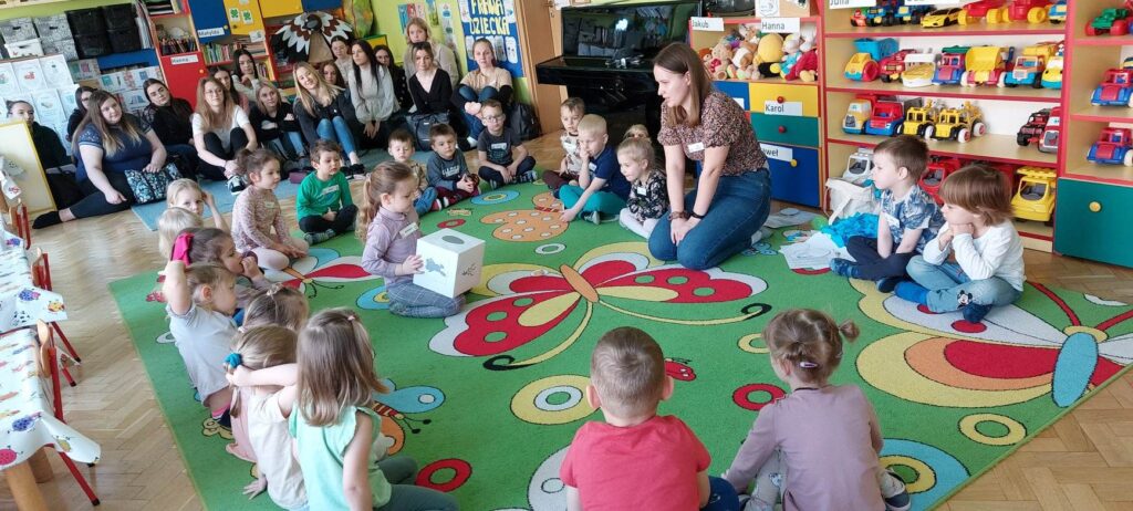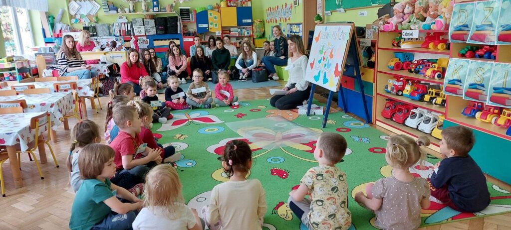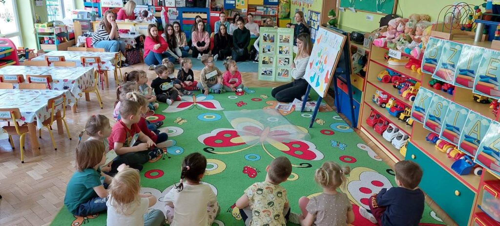 Studenci UPH w gr. ” Żabki” W kwietniu nasze dzieci brały udział w zajęciach śródrocznej praktyki dydaktycznej studentów Uniwersytetu Przyrodniczo- Humanistycznego w Siedlcach.
