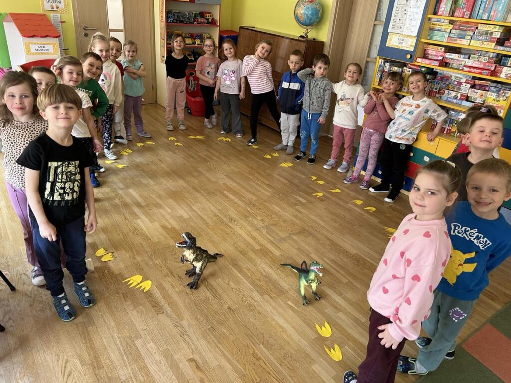 W dniach 9–13 marca 2026 r. grupa IV „Pszczółki” realizowała tematykę zajęć pt. „W świecie dinozaurów”. Był to tydzień pełen ciekawych odkryć i kreatywnej zabawy.