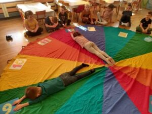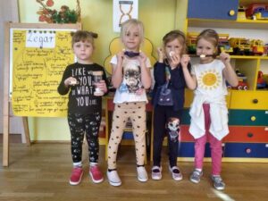 W dniach 4-15.10.2021 r. grupa 5-latków „Misie” realizowała projekt badawczy pt. „Zegar”. Celem podejmowanych zabaw było wzbogacenie wiedzy dzieci na temat działania jednego z największych wynalazków człowieka, jakim niewątpliwie jest zegar. Misie uświadomiły sobie upływ czasu, uczyły się go obserwować, poznały różne rodzaje zegarów. 5-latki doskonaliły