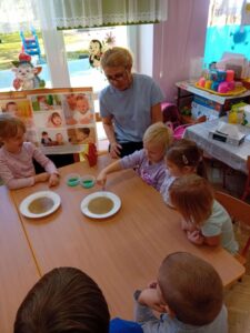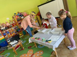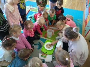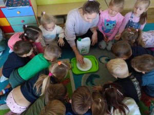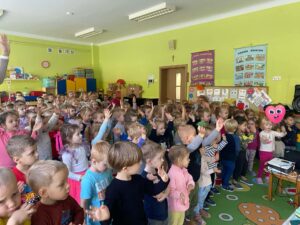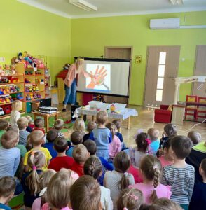 Dnia 16.10.2024 r. w naszym przedszkolu obchodziliśmy „Światowy Dzień Mycia Rąk”, który miał na celu kształtowanie właściwych postaw prozdrowotnych.  Dzieci dowiedziały się, w jakich sytuacjach konieczne jest mycie rąk i dlaczego należy używać mydła. Przedszkolaki obejrzały również prezentacje na temat zarazków, bakterii  i wirusów, które dostają się do naszego organizmu poprzez brudne ręce. Tego dnia nie zabrakło też utrwalenia prawidłowego schematu mycia rąk w praktyce oraz ciekawych eksperymentów.