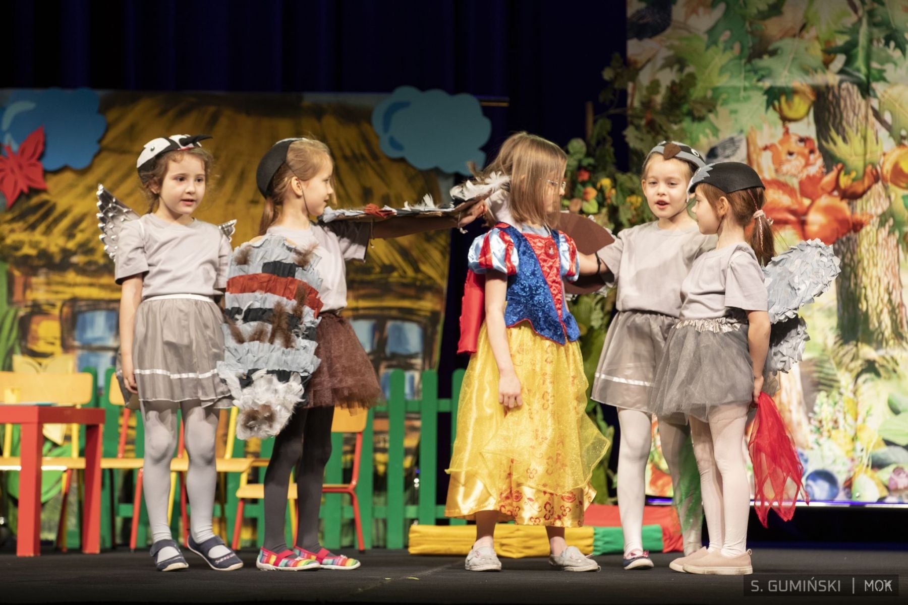W dniu 11.04.2024 r. grupa V „Kotki” reprezentowała nasze przedszkole na XXVIII Miejskim Festiwalu Twórczości Dziecięcej i Młodzieżowej organizowanym przez Miejski Ośrodek Kultury w Siedlcach, w kategorii Teatr. Dzieci pięknie wcieliły się w role aktorów, prezentując na scenie teatrzyk pt. „Królewna Śnieżka”. Przedszkolaki za swój występ zdobyły wyróżnienie! Serdecznie gratulujemy małym aktorom! 😊 fot. Sebastian Gumiński