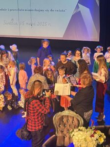 15 maja 2025 r. na Scenie Teatralnej Centrum Kultury i Sztuki w Siedlcach odbył się V Przegląd Twórczości Doroty Gellner, zorganizowany przez Miejskie Przedszkole nr 13 w Siedlcach. Nasze przedszkole reprezentowała grupa najstarsza ,,Smerfy”, która zaprezentowała swój talent artystyczny śpiewając piosenkę pr. ,,Śmigus – dyngus”, inspirowany twórczością znanej poetki i autorki książek dla dzieci.