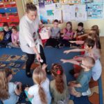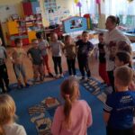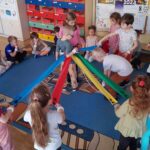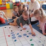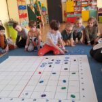 10.01.24 r. w grupie najstarszej odbyły się warsztaty matematyczne poprowadzone przez pedagoga specjalnego. Podczas zabaw matematycznych z wykorzystaniem ,,Wiatraka matematycznego” ,,Kotki” utrwalały orientację w schemacie własnego ciała i przestrzeni, kodowały z wykorzystaniem maty, doskonaliły umiejętność liczenia dodając i odejmując. Ponadto w zabawach z wiatrakiem ,,Kotki” kształtowały umiejętności społeczne poprzez współpracę w zespole.