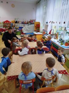 08 listopada 2023 r. odbyła się w naszym przedszkolu pierwsza, ale jakże ważna dla maluszków uroczystość – Pasowanie na przedszkolaka. „Pszczółki”zaprezentowały przygotowane z dużą starannością wiersze, piosenki oraz elementy tańca. Po części artystycznej nastąpił akt pasowania. Pani Dyrektor przyjęła dzieci do grona społeczności przedszkolnej. Wszystkie dzieci otrzymały pamiątkowe dyplomy oraz drobne upominki.