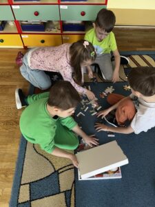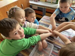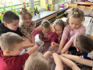12.03.2025 r. w grupie najstarszej odbyły się warsztaty poprowadzone przez pracownika Przedsiębiorstwa Energetycznego w Siedlcach pod patronem honorowym Prezydenta Miasta Siedlce Tomaszem Hapunowiczem. Cele zajęć było zgłębienie tajemnicy ciepła systemowego, jego powstania, oszczędzana oraz dbania o środowisko. ,,Smerfy” miały możliwość eksperymentowania z wodą ciepłą i zimną oraz kreatywnie działały podczas wspólnej zabawy.