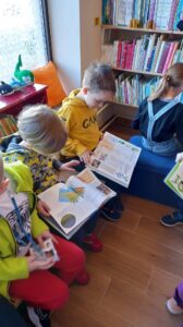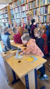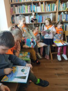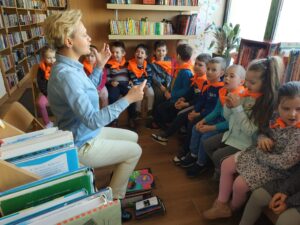 W kwietniu dzieci z grupy Wiewiórki i Misie udały się na wycieczkę do Miejskiej Biblioteki Publicznej przy ulicy Kaszubskiej w Siedlcach. Nasze przedszkolaki wzięły udział w lekcji bibliotecznej, którą poprowadziła Pani Monika Ryś. Dzieci z wielką radością zapoznały się z tym magicznym dla nich miejscem. Miały możliwość przejść między regałami w wypożyczalni i czytelni. Dowiedziały się jak można stać się czytelnikiem biblioteki oraz jak należy się w niej zachować. Wszystkim dzieciom bardzo spodobały się kolorowe i bogato ilustrowane książki, które z chęcią oglądały.