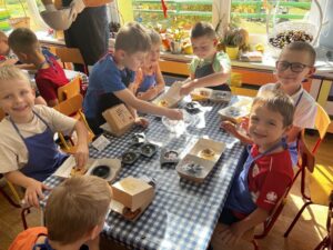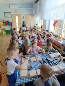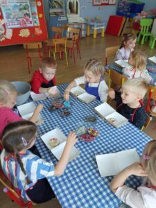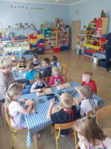 Kolejne zajęcia w ramach projektu pt. „Sowa Natasza do rozmowy zaprasza” w gr. Misie. Tym razem rozmawialiśmy o problemie nadmiernego korzystania z narzędzi cyfrowych: telefonów, tabletów. Wspólnie doszliśmy do wniosku, że korzystanie z technologii jest przydatną i przyjemną czynnością, jednak dużo więcej cennego czasu warto poświęcić na rozmowy i spotkania z naszymi bliskimi i przyjaciółmi….