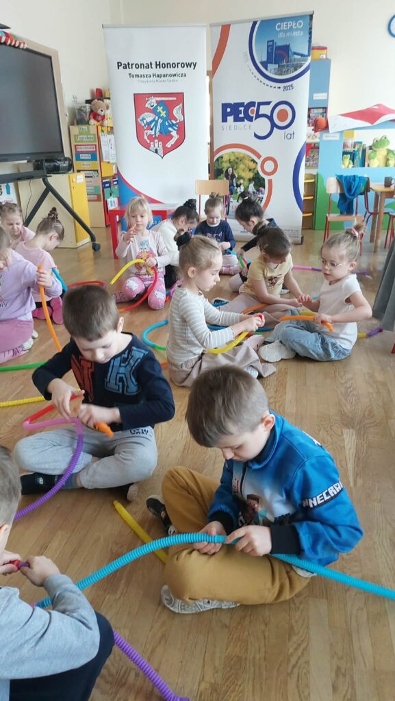 Dzieci budowały system ciepłowniczy z kolorowych rurek, wysłuchały edukacyjnej bajki oraz układały tematyczne puzzle.