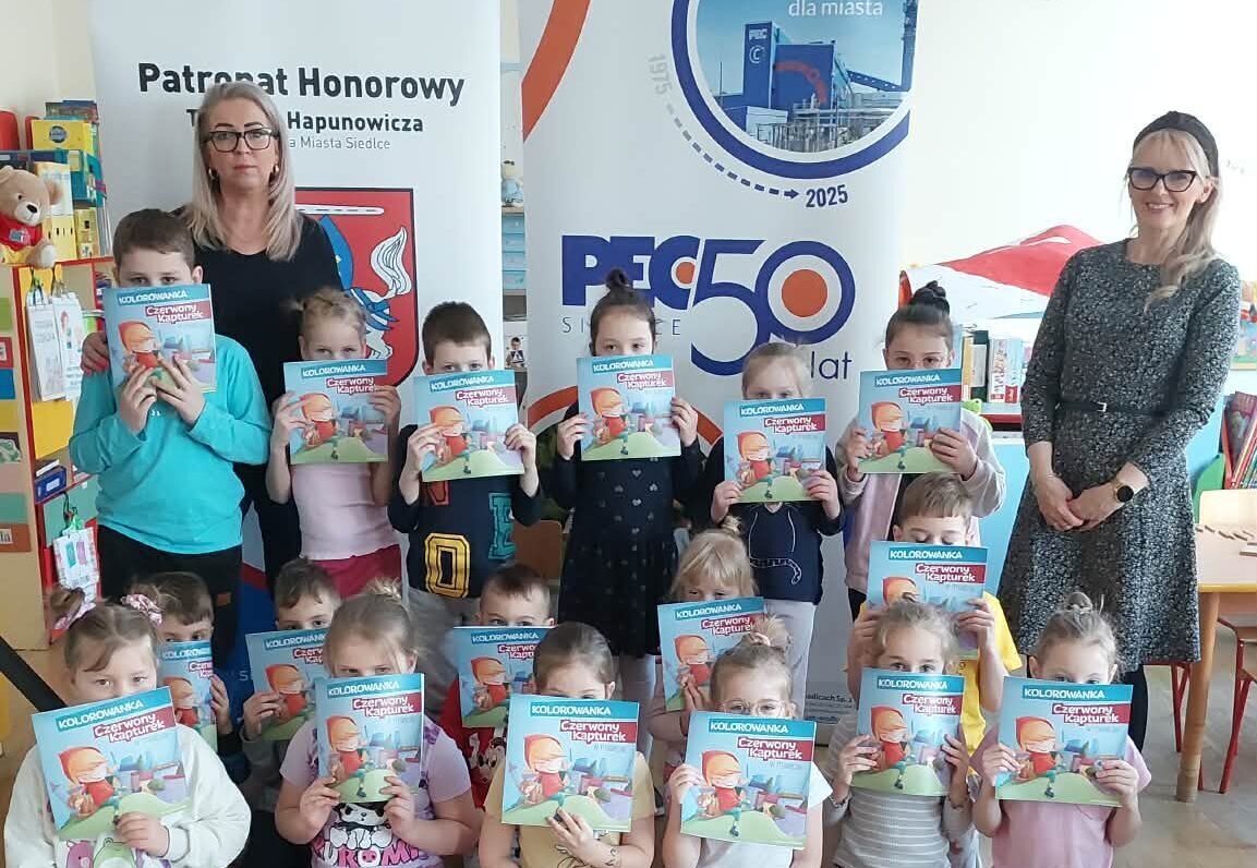 Na zakończenie przedszkolaki otrzymały miłe niespodzianki – książeczki do kolorowania i kredki.