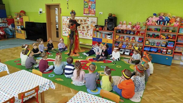 🍁 Spotkanie z Panią Jesienią 🍂 W grupie „Smerfy” zagościła Pani Jesień – barwna, pachnąca i pełna niespodzianek. Dzieci z wielkim zainteresowaniem odkrywały jej skarby: kolorowe liście, kasztany, żołędzie i jarzębinę. 🌰 Podczas zajęć przedszkolaki rozmawiały o zmianach zachodzących w przyrodzie jesienią, rozpoznawały i nazywały dary tej pory roku, a także uczestniczyły w zabawach ruchowych…