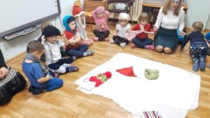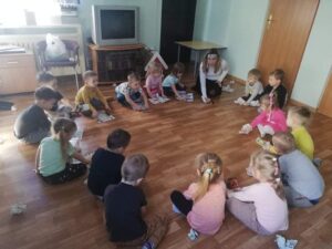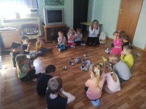 Dnia 8.11.23r.w grupie „Żabki” gościliśmy Panią Weterynarz-mamę Lili.Dzięki Pani Sylwii nabyliśmy wiedzę na temat zasad postępowania w kontaktach ze zwierzętami, aby uniknąć niebezpiecznych i nieprzyjemnych zdarzeń.Dziękujemy za przeprowadzenie ciekawych zajęć oraz poświęcony czas.