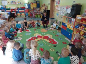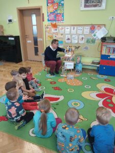 W listopadzie 2025 r. mieliśmy przyjemność gościć w grupie trzeciej Rodziców Oliwiera, którzy przynieśli ze sobą interesującą literaturę dziecięcą. Serdecznie dziękujemy Państwu za poświęcony czas oraz wsparcie akcji „Cała Polska czyta dzieciom” swoją obecnością.
