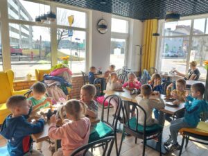 W dniu 10.03.2025r. dzieci z gr. II "Biedronki" odwiedziły pobliską piekarnię "Dzień Dobry Siedlce". Nasze przedszkolaki zobaczyły z bliska jak wygląda praca piekarza. Dowiedziały się w jaki sposób powstaje pieczywo.🥖🫓 Na koniec zjadły słodki poczęstunek. 🥯