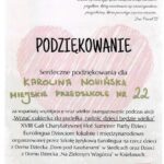 Rodzice i dzieci z Miejskiego Przedszkola nr 22 wzięli udział w akcji charytatywnej pt. „Wrzuć cukierka do pudełka – radość dzieci będzie wielka”, zainicjowanej przez szkołę językową Eurolingua w Siedlcach. Akcja dotyczyła zbiórki słodyczy w ramach XVIII Gali Charytatywnej Hot Summer Party 2021 – Dzieci Eurolingua Dzieciom międzynarodowo i lokalnie w celu wsparcia domów dziecka. W czasie trwającej ponad miesiąc akcji nasze przedszkolaki wraz z rodzicami dostarczyli blisko 19 kg słodyczy, które następnie zostały przekazane podopiecznym Domów Dziecka w Siedlcach i Kisielanach. Dziękujemy wszystkim uczestnikom zbiórki za ich hojne serca.