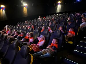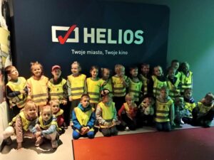 W dniu 15 września 2025 r. dzieci z grupy „Pszczółek” i „Biedronek” udały się autokarem na wycieczkę do kina Helios w Siedlcach. Celem wyjścia było obejrzenie bajki pt. „Niesamowite przygody skarpetek 2”.