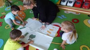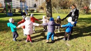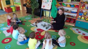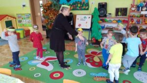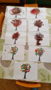 Kolejnym ważnym dniem obchodzonym przez grupę ,,Smerfy” był Dzień Drzewa. W dniu 11 października nasze maluszki zdobywały obszerną wiedzę na temat: budowy drzew, poszczególnych gatunków oraz funkcji pełnionych przez nie w przyrodzie. Dzieci uczyły się rozpoznawać i nazywać zarówno wybrane drzewa iglaste jak i liściaste. Ponieważ bezpośrednie obcowanie z eksponatami sprzyja nauce, dlatego wyszliśmy do ogrodu przedszkolnego, aby omówić wybrane przez nas drzewa, dotknąć ich i przeprowadzić obserwacje. Wspólne tańce i zabawy przy drzewach były świetną okazją do integracji dzieci. Między innymi w ten sposób kształtujemy postawę ekologiczną wśród wychowanków i poczucie odpowiedzialności za zieleń wokół nas.