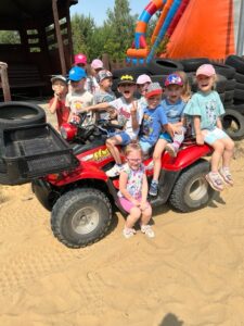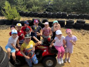 05.06.2025 r. z okazji Dnia Dziecka przedszkolaki z naszego przedszkola wyjechali na wycieczkę do Centrum Rekreacyjno-Sportowego „Krainy Przygód” w Starych Iganiach. Podczas pobytu na dzieci czekało mnóstwo atrakcji: przejazd karuzelą, gry i zabawy z animatorami, zabawy na placu zabaw, dmuchańce, przejażdżka quadem, wizyta u dojnej krowy oraz smaczny poczęstunek z ciepłą kiełbaską.