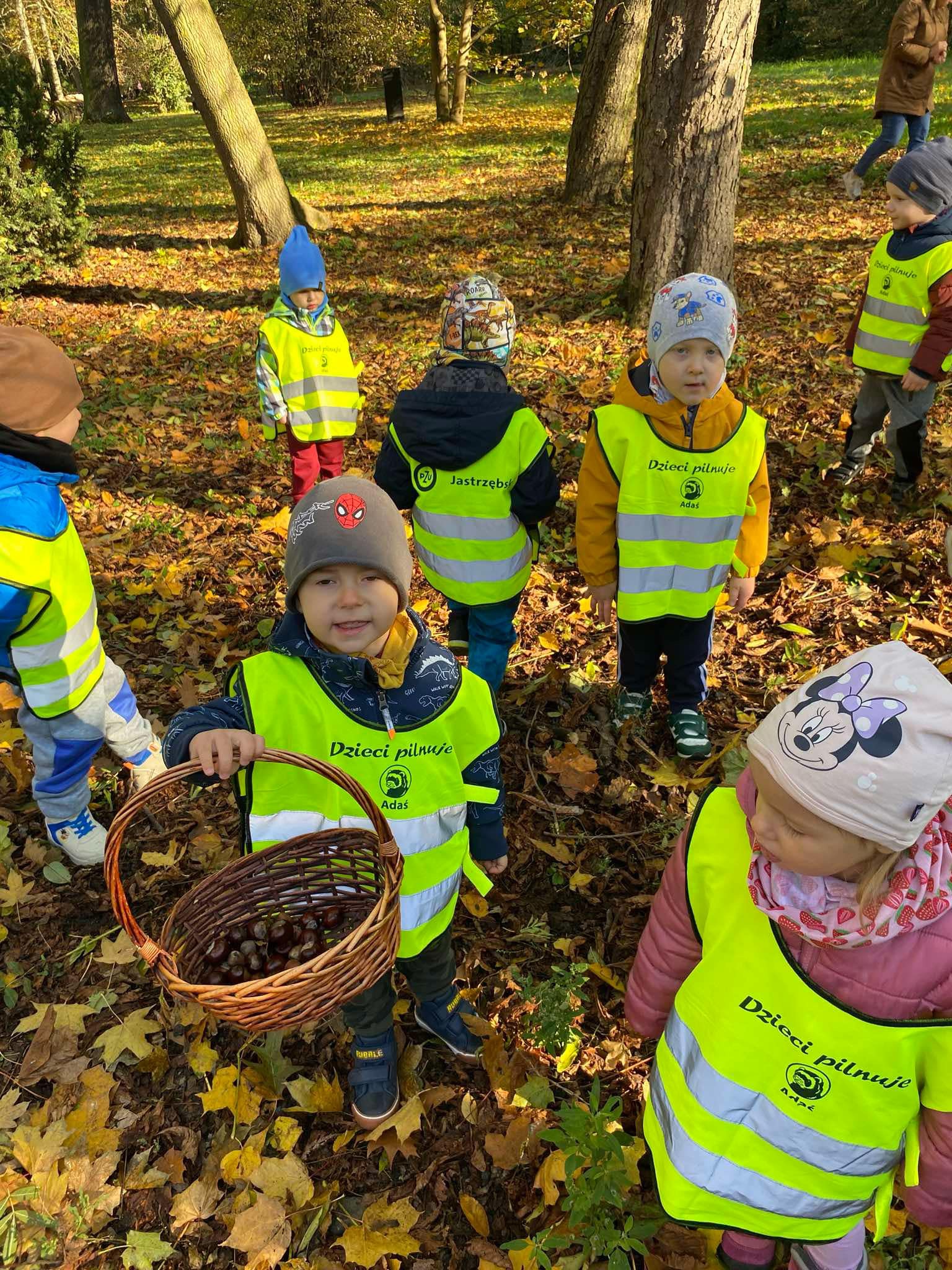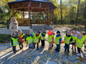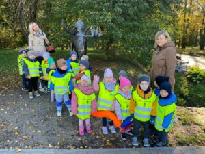17 października maluszki z grupy „Kotki” udały się na wycieczkę do siedleckiego parku Aleksandria. Wycieczka dostarczyła przedszkolakom wiele wiadomości, ale również niezapomnianych wrażeń. Podczas pobytu w parku podziwialiśmy jesienne barwy, piękne krzewy i drzewa. Bacznie przyglądaliśmy się przyrodzie: korze drzew, liściom, poznawaliśmy zwierzęta żyjące w parku. Najwięcej radości sprawiło dzieciom zbieranie żołędzi i kasztanów, którymi przyozdobiliśmy kącik przyrody w naszej sali 🙂