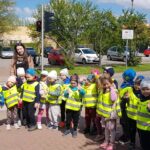 Dnia 08.05.2023r. przedszkolaki z grupy Smerfy wyruszyły na wycieczkę na skrzyżowanie gdzie mogły obserwować jak odbywa się ruch drogowy na skrzyżowaniu z sygnalizacją świetlną. Dzieci utrwaliły znaczenie sygnalizacji świetlnej oraz zasady bezpiecznego poruszania się po prawej stronie chodnika.