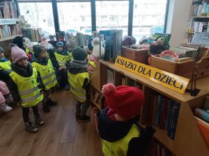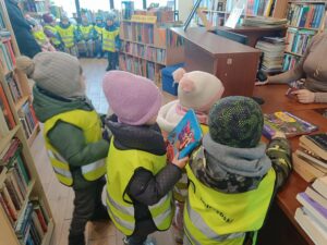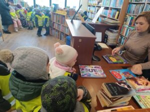 Podczas wizyty przedszkolaki miały okazję obejrzeć zgromadzone zbiory, dowiedzieć się, jak prawidłowo dbać o książki oraz jak funkcjonuje system ich wypożyczania.