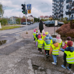 23.10.23 r. Pszcz贸艂ki w ramach omawianej tematyki „Bezpiecznie w pobli偶u ulicy” uczestniczy艂y w wycieczce na pobliskie skrzy偶owanie. Przedszkolaki pozna艂y elementarne przepisy pieszego ruchu drogowego, obserwowa艂y i pr贸bowa艂y nazywa膰聽 wybrane znaki drogowe.