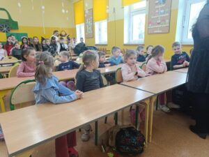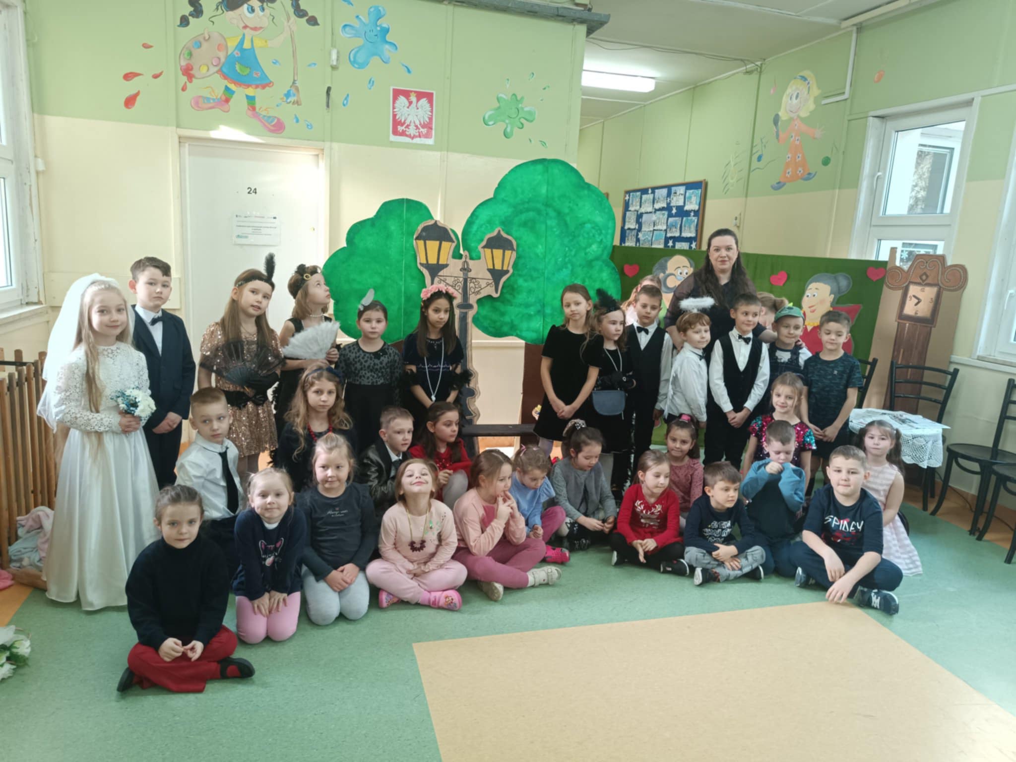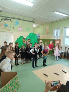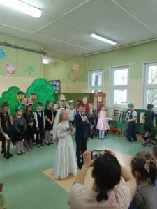 W dniu 23.01.2025 r. dzieci z grupy IV „Żabki” zostały zaproszone do Szkoły Podstawowej nr 10 w Siedlcach na spektakl pt. “Powróćmy jak za dawnych lat”. Wielkim zaszczytem była dla nas obecność oraz uczestniczenie w znakomitym przedstawieniu w wykonaniu uczniów klasy 1.
