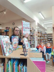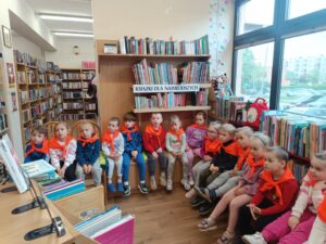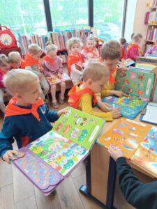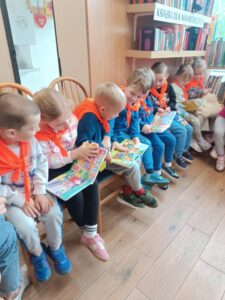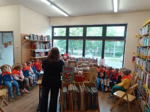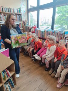 W dniu 6 maja 2025 r. dzieci z grupy III "Pszczółki" wybrały się na wycieczkę pieszą do Biblioteki Publicznej, gdzie wzięły udział w lekcji bibliotecznej. Przedszkolaki z zainteresowaniem wysłuchały opowieści o książkach, poznały zasady korzystania z biblioteki oraz miały okazję obejrzeć różnorodne pozycje literatury dziecięcej.