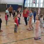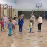 „Żabki na zajęciach sportowych” W dniu 8.12.23r.gr.III wybrała się na zajęcia sportowe na sali gimnastycznej w Szkole Podstawowej nr.10 w Siedlcach,ponieważ już nasze 4 latki wiedzą,że sport to zdrowie.