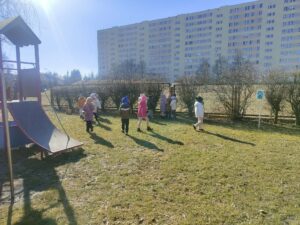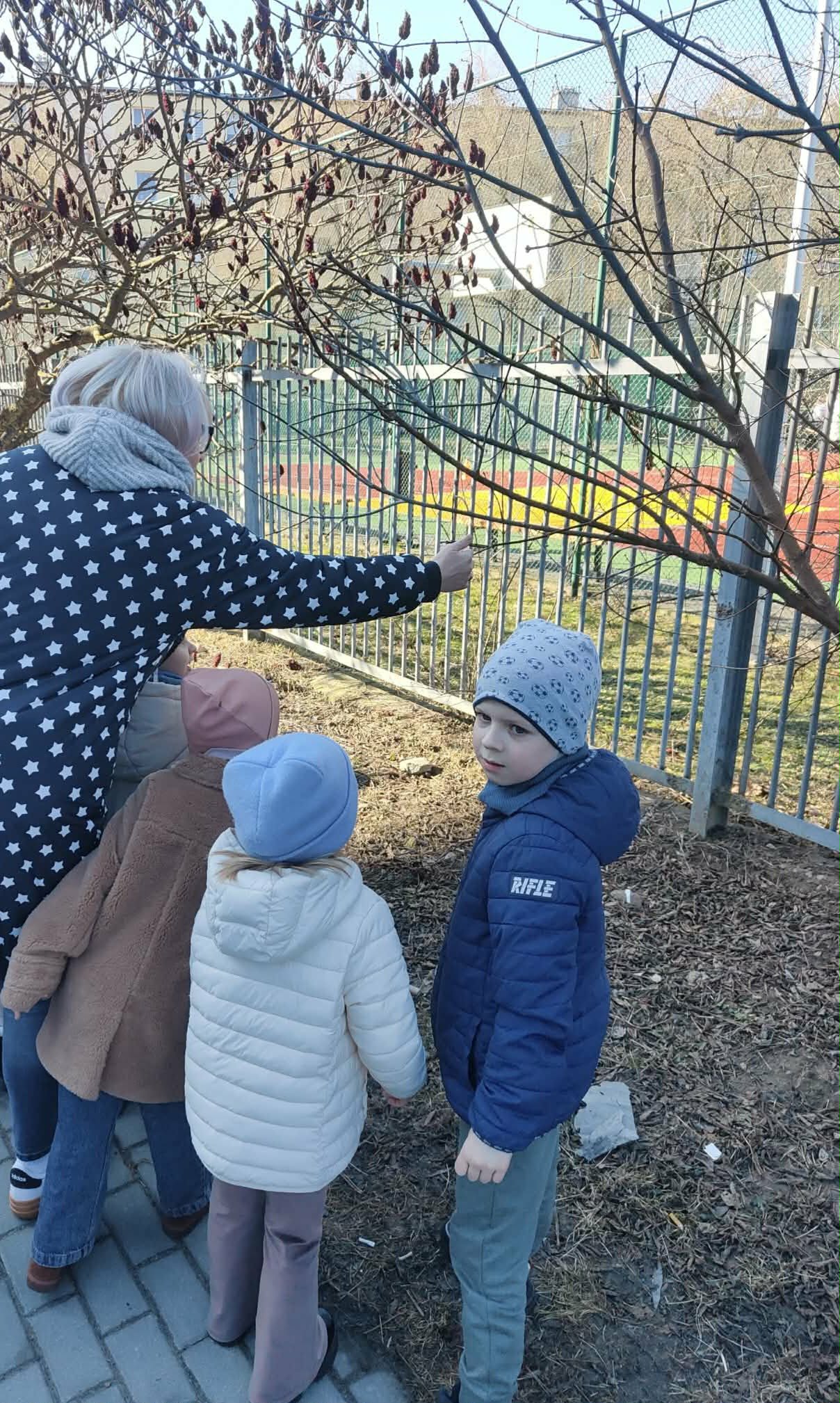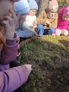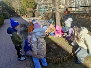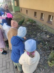 poszukiwaniu wiosny. W okolicach przedszkola tropiły jej pierwsze oznaki