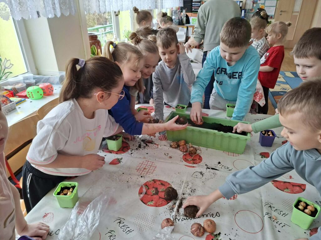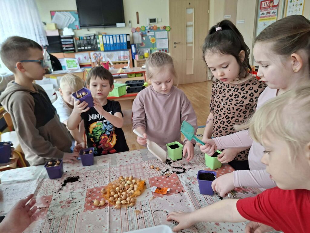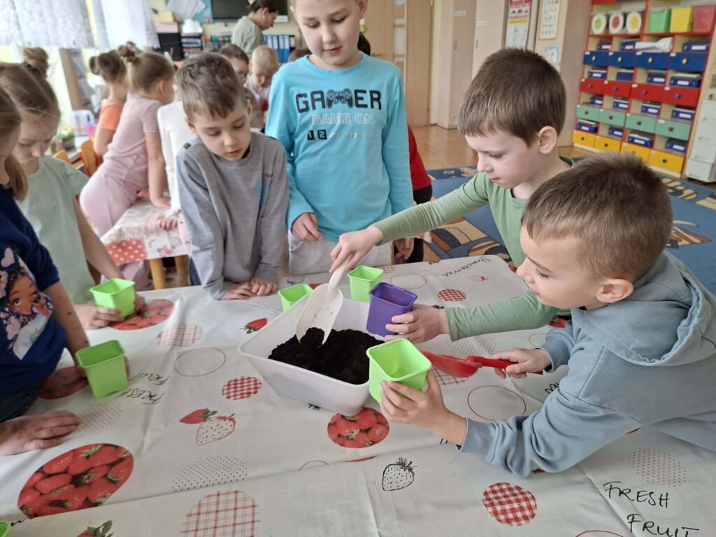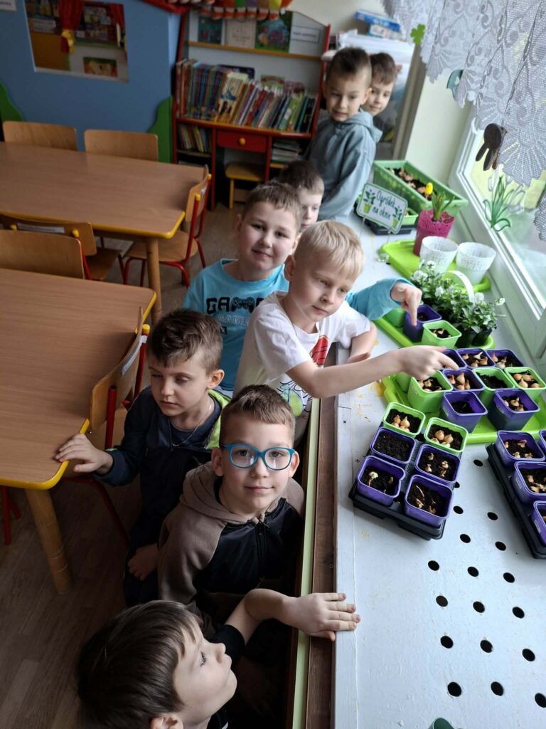 W dniu 20.03 grupa starszaków założyła własny ogródek na oknie. Dzieci wspólnie sadziły rośliny, poznawały zasady ich pielęgnacji oraz obserwowały, czego potrzebują do wzrostu. Zajęcia sprawiły dzieciom dużo radości i wzbudziły ich ciekawość przyrodniczą.