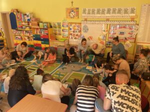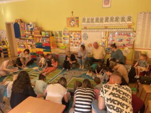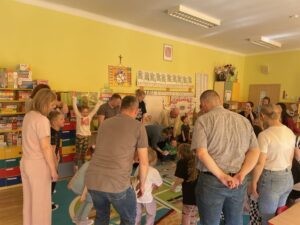 W gr. „Żabki” odbyły się zajęcia dydaktyczne „Święta wielkanocne okazją do wspólnej zabawy” z udziałem rodziców. Dziękujemy Rodzicom naszych Żabek, którzy w przedświątecznej krzątaninie odpowiedzieli na to zaproszenie, zechcieli poobserwować swoje pociechy w trakcie jednego z ich codziennych zajęć oraz aktywnie spędzić z nimi czas.
