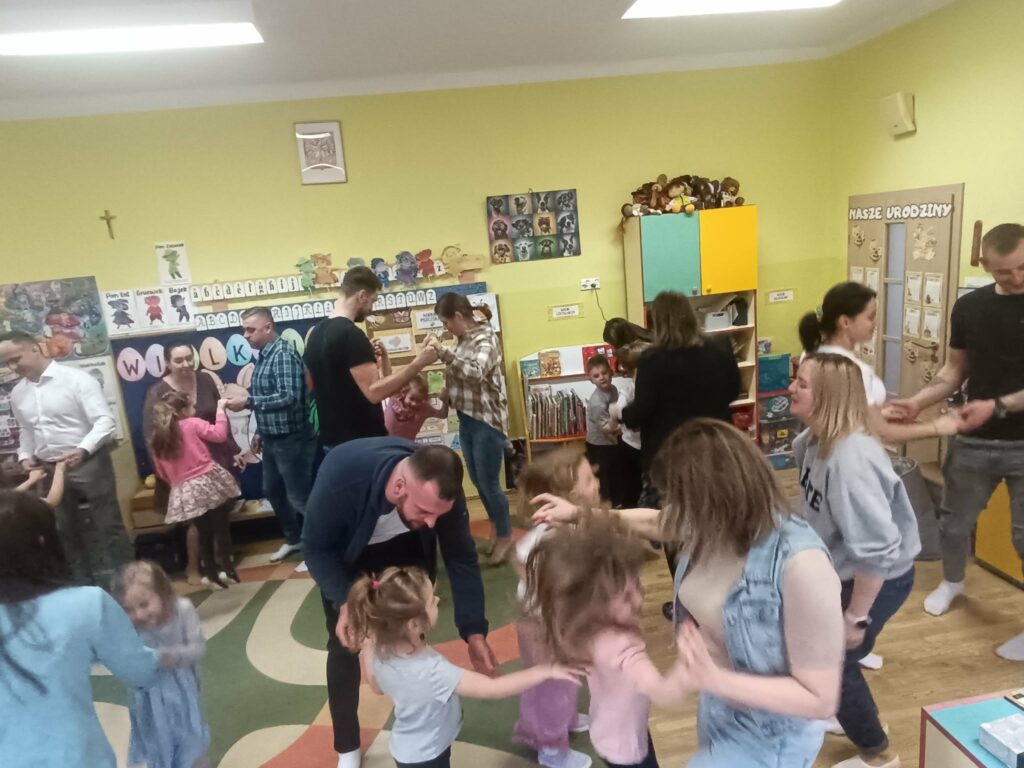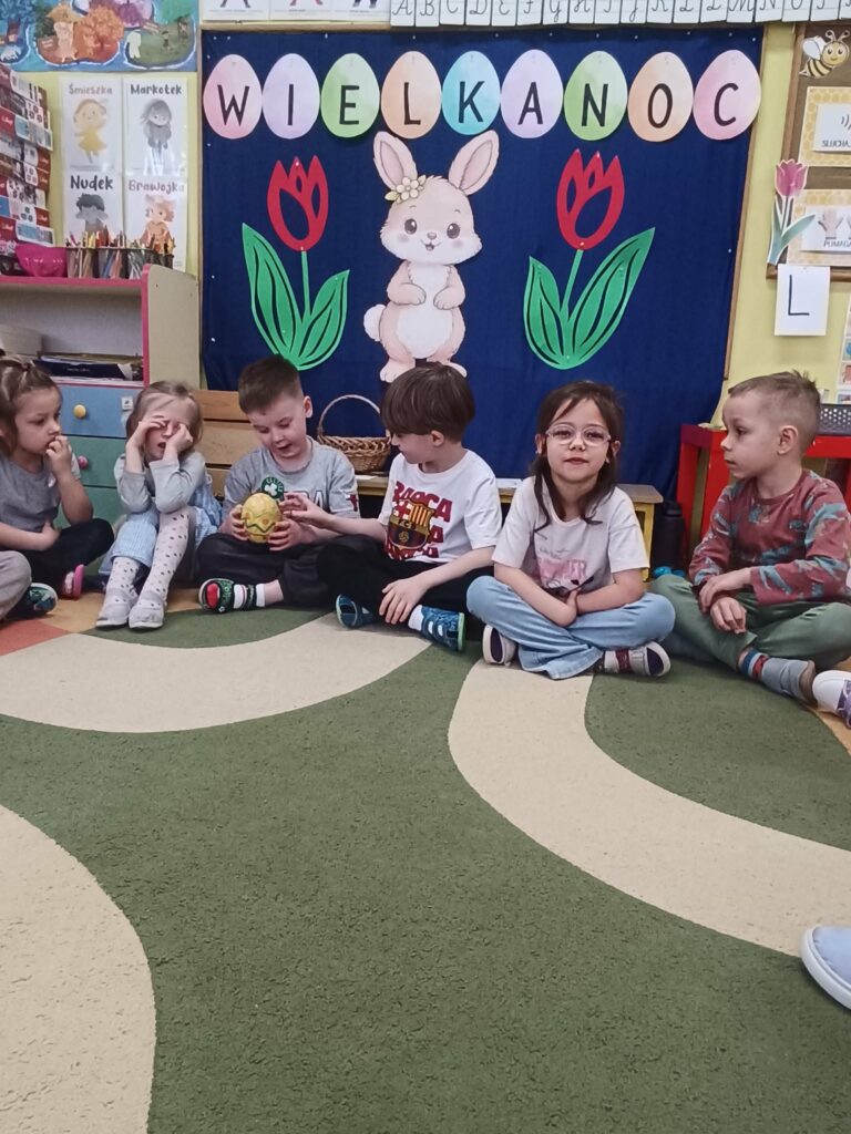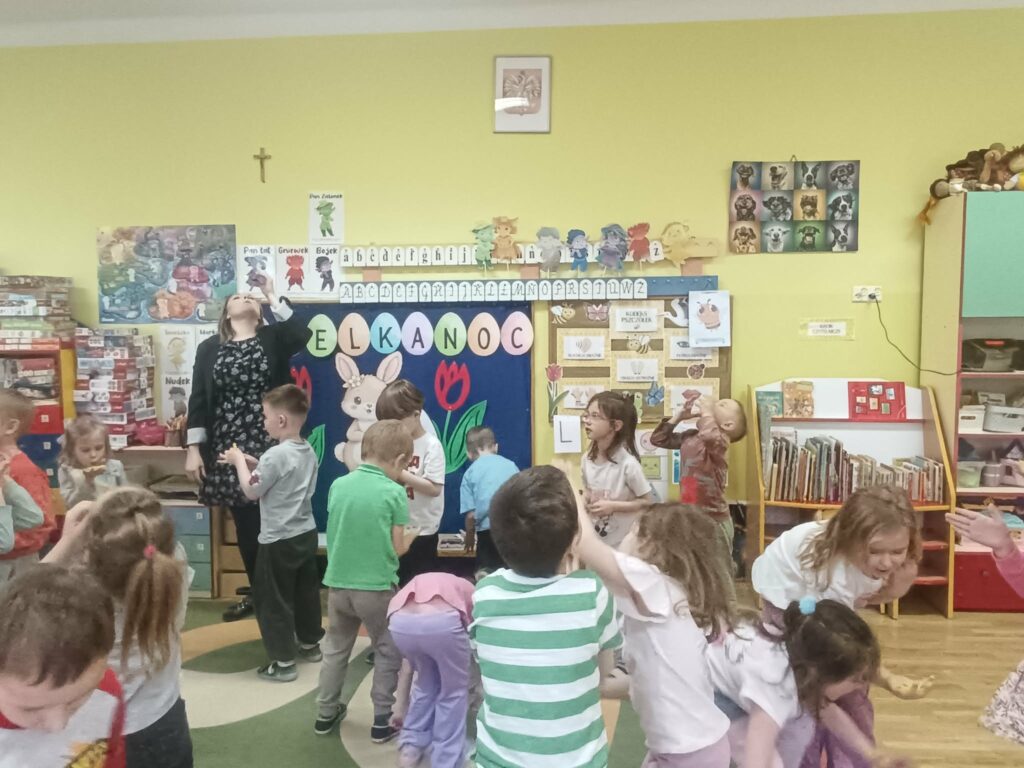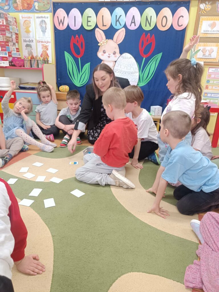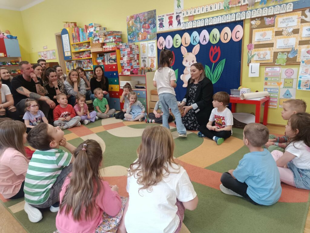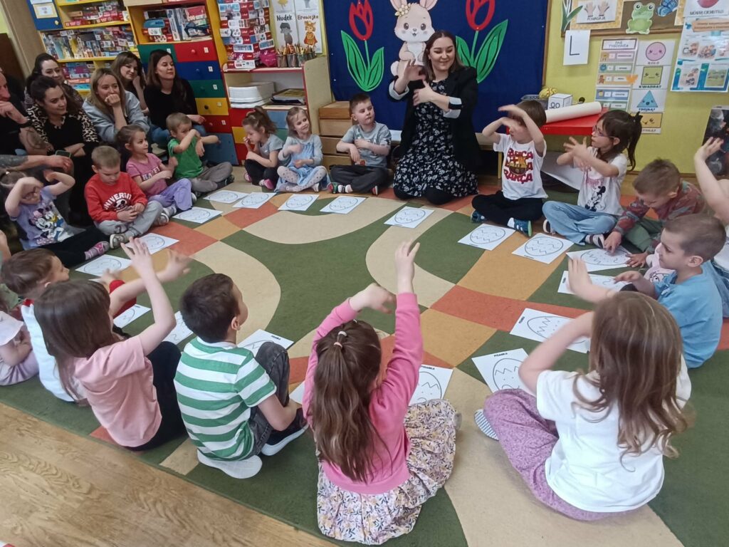 W dniu 25.03.2026 r. w gr. IV „Pszczółki ” odbyły się zajęcia otwarte dla rodziców pt. „Wielkanocny zajączek”. Dzieci wykonywały zadania ukryte w pisankach, które przygotował dla nich zajączek. Na przedszkolaki czekały różnorodne aktywności – zabawy matematyczne, muzyczne, grafomotoryczne, ortofoniczne oraz ruchowe. Wszystkie zadania były pełne radości i zaangażowania.