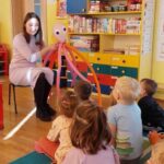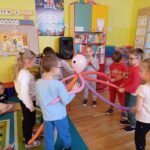 16.01.24 r. dzieci z grup Żabki i Smerfy wzięły udział w zajęciach rozwijających kompetencje społeczno-emocjonalne pt. „O złośnicy ośmiornicy” z elementami bajkoterapii, prowadzonych przez psychologa. Głównym celem zajęć było kształtowanie u dzieci umiejętności radzenia sobie ze złością i współpracy