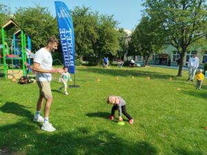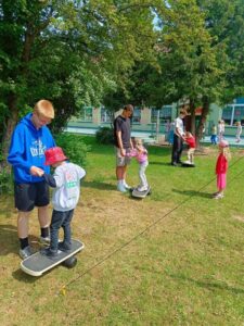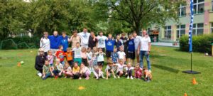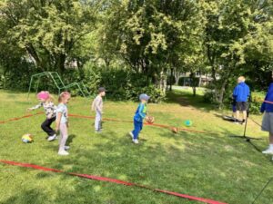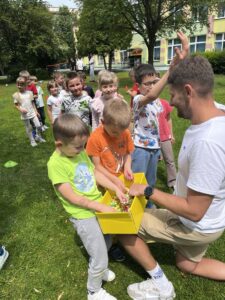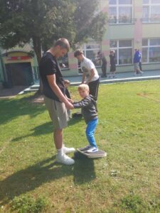 10.06.2025 r. tradycyjnie, jak co roku gościliśmy trenera Rafała Sobiło oraz zawodników koszykówki UKS BASKET Siedlce. Spotkanie miało na celu promowanie zdrowego stylu życia oraz zachęcanie dzieci do aktywności sportowej. W tym roku wszystkie grupy uczestniczyły w zajęciach zorganizowanych na terenie naszego przedszkola i z radością uczestniczyły w zaplanowanych atrakcjach. Pan Rafał zachęcał dzieci do aktywnego spędzania wolnego czasu na świeżym powietrzu, podczas których nie zabrakło zabaw zawierających zdrową, sportową rywalizację. Zwieńczeniem spotkania były przygotowane drobne upominki dla dzieci przygotowane przez klub.
