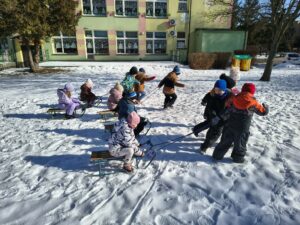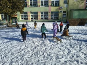 śniegu z użyciem sanek. Wcześniej poznały zasady bezpiecznego